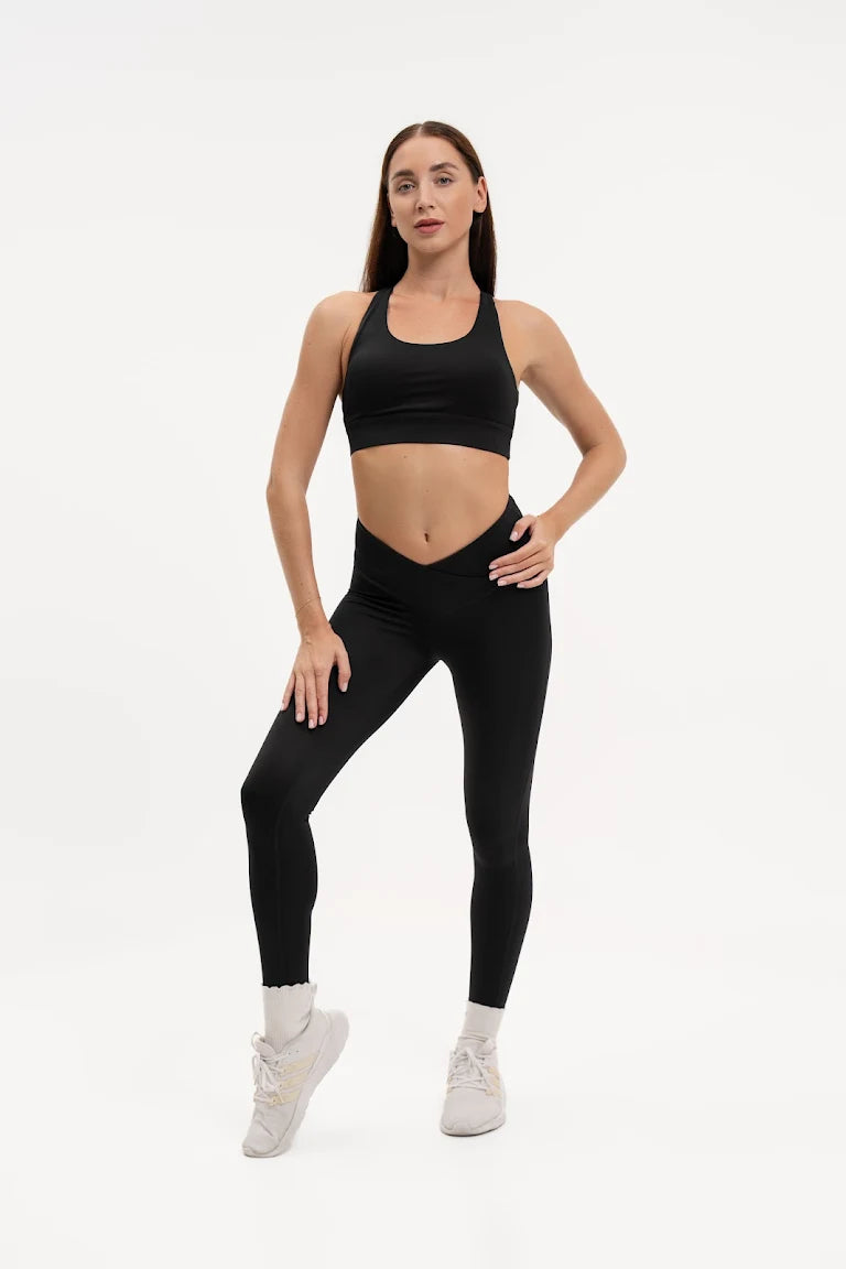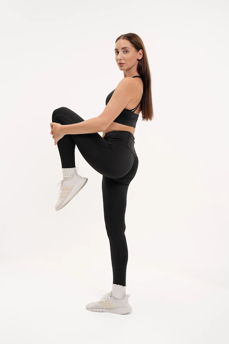 Sculpted X-Over Scrunch Bum Leggings - Black